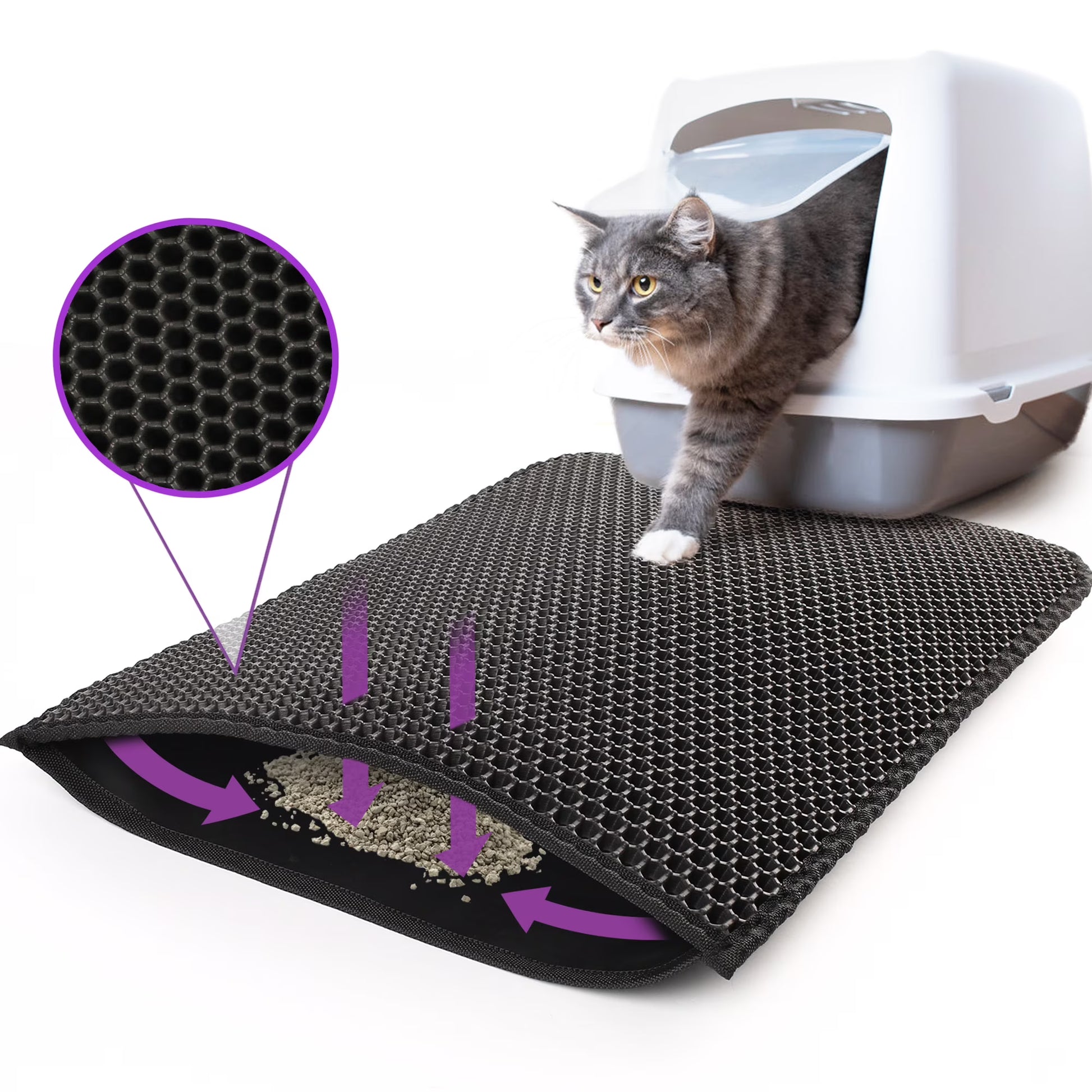 • Double Layer Litter Mat: Cat litter falls through the honeycomb upper layer of the mat to the bottom layer